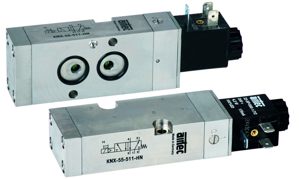Zum Portfolio elektrisch betätigter Ventile von Airtec zählt die Namur-konforme Baureihe KNX-55 in Edelstahlausführung. Die für Tieftemperaturen bis -30°C ausgelegten Kolbenschieber-Ventile sind für Durchflussraten von 1.280, 1.060 oder 1.050Nl/min dimensioniert und können mit einem Arbeitsdruck von 3…8 bar beaufschlagt werden.