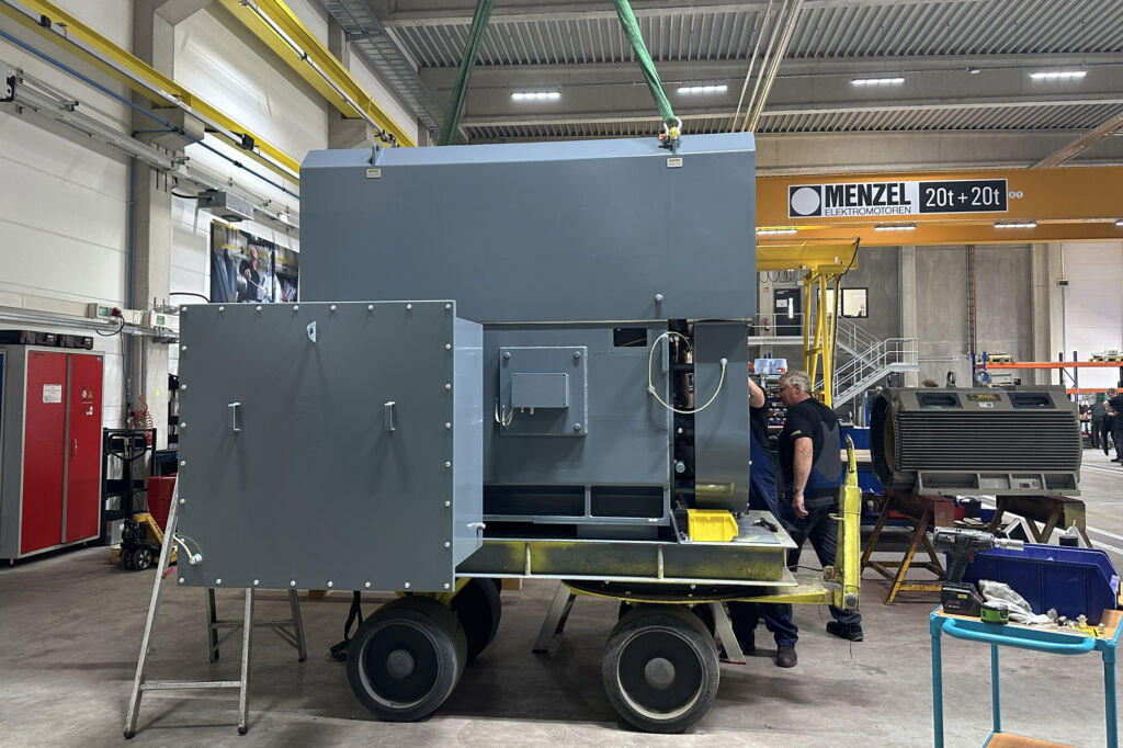 Die Maße wurden dem vorhandenen Motor angepasst, um einen reibungslosen Austausch zu ermöglichen. Menzel fertigte einen überdimensionalen Klemmkasten nach Kundenvorgaben. Der Mühlenmotor mit einer Nennspannung von 690V liefert ein Nennmoment von 11575Nm. Er ist geeignet für einen Betrieb in beiden Drehrichtungen und verfügt über Schutzart IP55 und Kühlart IC 611 (Luft-Luft-Wärmetauscher).