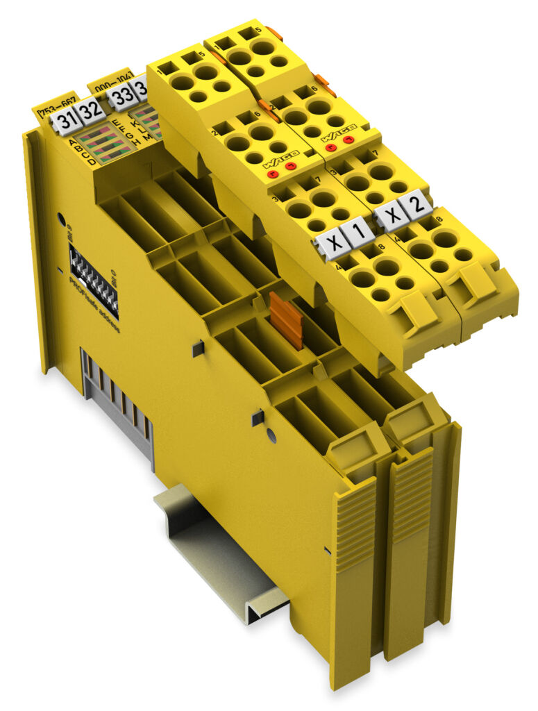 Die neuen Logikmodule von Wago ermöglichen es sichere Applikationen, wie z.B. Zweihandbedienung oder Türzuhaltung, auch ohne Sicherheitssteuerung zu realisieren. Die Module können hinter Steuerungen und Kopplern des Unternehmens über Profisafe eingebunden werden. Das führt zu schnelleren Reaktionszeiten auf unterster Feldebene, da die Kommunikation über den Feldbus wegfällt. Zudem wird der Aufbau von räumlich kleineren Sicherheitsapplikationen ermöglicht. Parametriert wird die sichere Logik über den neuen Safety Editor. Aufgrund der Logikmodule kann eine Maschine jetzt inklusive einer Sicherheitsapplikation mit Wago-Steuerungen, wie z.B. dem PFC, realisiert werden.
