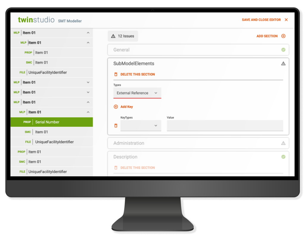 Mit dem Template Designer in Twinsphere können Anwender bestehende Teilmodell-Templates für digitale Zwillinge individuell anpassen.