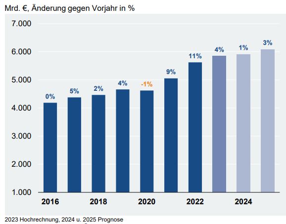 Der Markt für Güter der Elektroindustrie hat im Jahr 2023 einen Wert von 5.847Mrd.€ erreicht. Das ist das Ergebnis der jüngsten ZVEI-Berechnungen. Dabei hat sich die Wachstumsdynamik, nach den hohen Zuwachsraten in den Jahren 2021 und 2022, im vergangenen Jahr auf 4% abgeschwächt. Für dieses Jahr rechnet der Verband nur noch mit einem geringen Anstieg des globalen Elektromarkts in Höhe von 1%. Ursächlich dafür ist die allgemein schwache Industriekonjunktur, die u.a. vom hohen Zinsniveau, geopolitischer Unsicherheit und Kaufzurückhaltung belastet wird. Für 2025 prognostiziert der ZVEI-Fachverband eine etwas bessere Entwicklung (+3%), die aber im Vergleich zu früheren Jahren unterdurchschnittlich bleibt. Grundsätzlich sollte der globale Markt im kommenden Jahr im Zeitverlauf von zurückgehenden Zinsen und einer wieder höheren Investitionsneigung profitieren können.