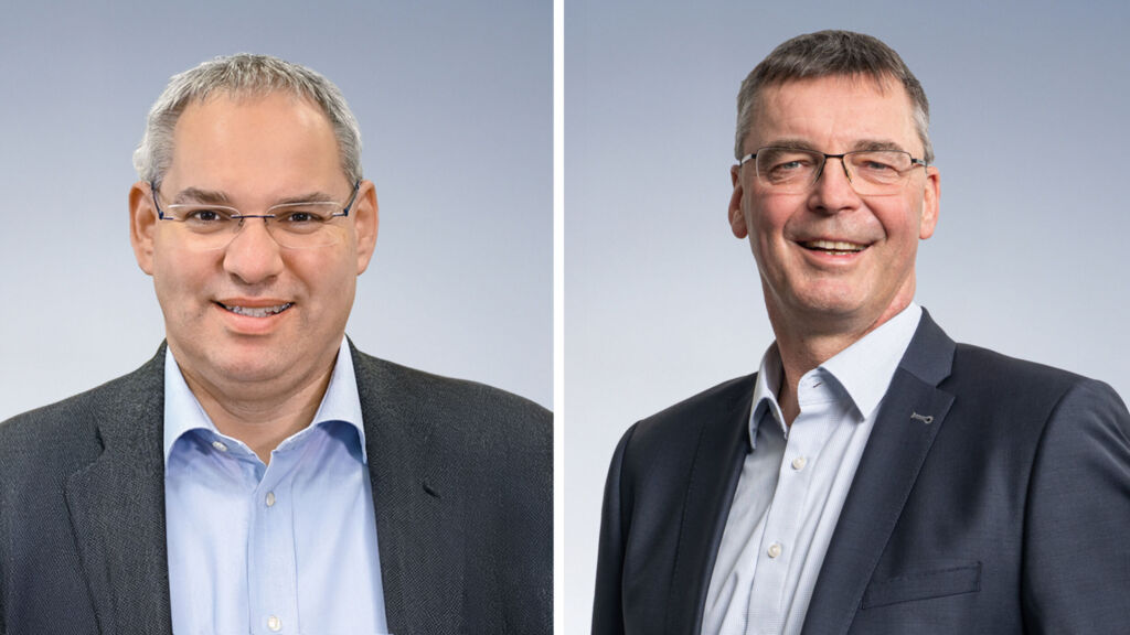 Volker Schiek (l.) übernimmt am 1. Juli im Vorstand bei Bosch Rexroth die Verantwortung für kaufmännische Aufgaben, Einkauf, Logistik und Personal und wird Arbeitsdirektor. Er tritt damit die Nachfolge von Holger von Hebel (r.) an, der ab Juli eine Aufgabe in der Bosch-Zentrale übernimmt.