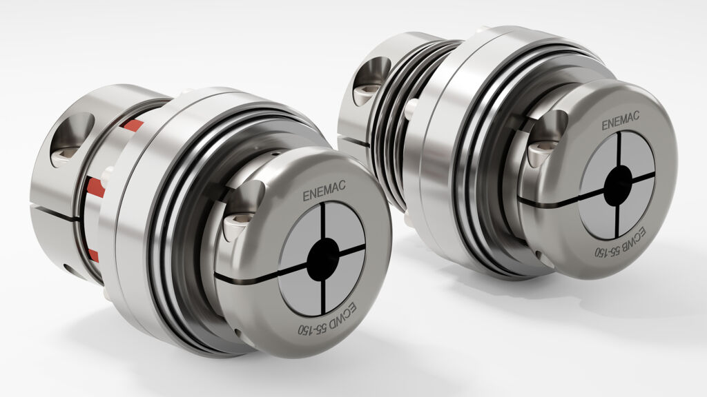 Für Direktantriebe in besonders sensiblen Bereichen bietet Enemac die Edelstahl-Sicherheitskupplungen ECWB und ECWD an. Beide Varianten erfüllen hohe Hygienestandards und sind beständig gegenüber Reinigungs- und Desinfektionsmitteln. Auch hier kommen beschichtungsfreie Edelstahl-Tellerfedern zum Einsatz, um Korrosionsrisiken und Partikelbildung konsequent zu vermeiden. Der Drehmomentbereich liegt bei diesen Varianten bei 5 bis 900Nm, sie haben einen Wellendurchmesse von 8 bis 65mm und sind für einen Temperaturbereich von -50 bis +150°C (ECWB) bzw. -30 bis +90°C (ECWD) geeignet.