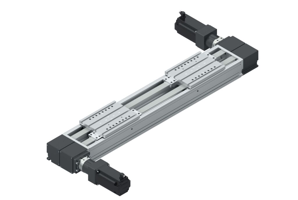 Bosch Rexroth erweitert seine Compactmodul-Baureihe CKR um eine Doppelriemenachse für das dynamische Handling mit einer Gesamtnutzlast bis zu 770kg. Die neue Schwerlastachse CKR-280 vereint die Funktionen von zwei Linearachsen in einem Linearsystem. Die beiden unabhängig voneinander angetriebenen Tischteile in einem Hauptkörper sollen dynamische Anwendungen mit hohen Antriebsmomenten und kurzen Taktzeiten ermöglichen. Das kompakte Doppelhandling spart Bauraum ein. Gleichzeitig sinken Zeit- und Kostenaufwände für Engineering, Montage und Inbetriebnahme. Bestellbar ist die neue Lösung als Einzelachse oder kombiniert mit anderen Linearachsen als Mehrachssystem, optional auch inklusive Antriebspaket. Mit der neuen Doppelriemenversion der Compactmodul-Baureihe CKR in Baugröße 280 bietet Bosch Rexroth eine bauraumoptimierte Schwerlastachse mit zwei Nutzlasten bis 385kg und Antriebsmomenten bis 250Nm. Die beiden Tischteile der Doppelriemenachse können unabhängig voneinander im Aluminium-Hauptkörper des Compactmoduls bewegt werden. Durch die beiden integrierten Antriebsstränge lassen sich vielfältige Aufgaben mit nur einer statt bisher zwei Linearachsen lösen. Für ein schnelles und einfaches Engineering können die Compactmodule bis zu einer Länge von 5,5m online konfiguriert werden. Auf Wunsch realisiert das Unternehmen auch größere Verfahrwege. Eine hohe Beschleunigung von bis zu 5g und eine maximale Geschwindigkeit von 5m/s schaffen die Voraussetzungen für kurze Taktzeiten bei gleichzeitig hoher Präzision mit einer Wiederholgenauigkeit von +/- 0,05mm. Nach ihrer Markteinführung wird die Schwerlastachse CKR-280 als neue Baugröße auch in die eTool-Kette für Einzel- und Mehrachssysteme integriert.