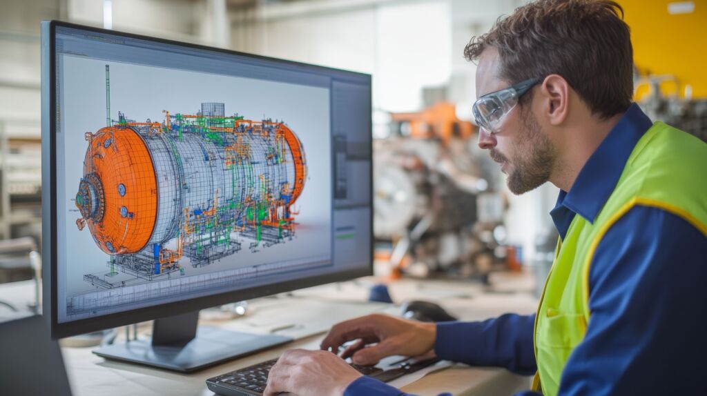 Engineer doing a model review in his 3D pressure vessel design - many uses in oil and gas industry
