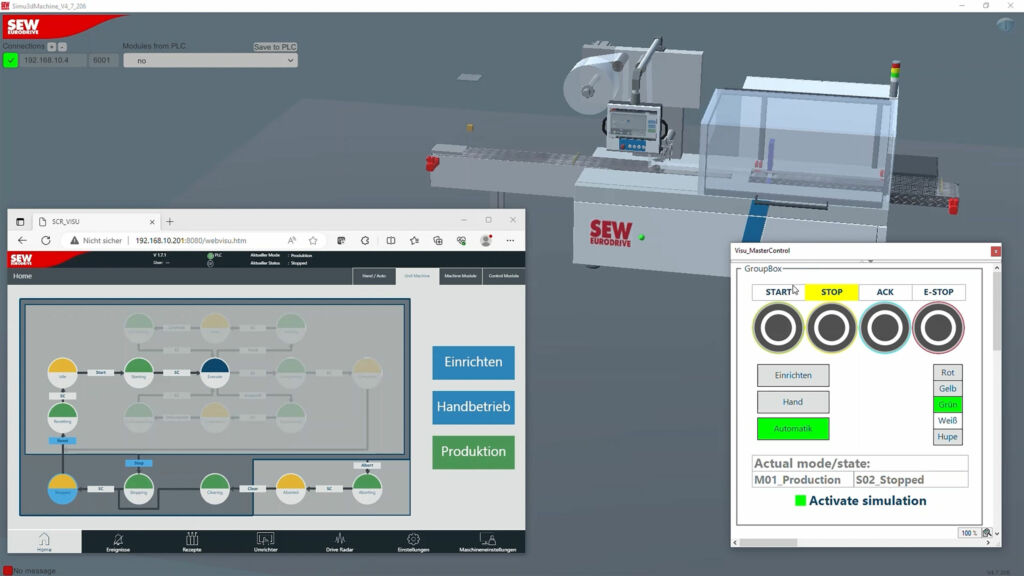 SEW-Eurodrive will mit der Dienstleistung Digital Twin as a Service umfassende Unterstützung bei der Inbetriebnahme von Maschinen bieten. Denn so können Maschinen und Applikationen bereits vor der physischen Umsetzung simuliert und getestet werden. Fehler lassen sich somit frühzeitig erkennen. Das hilft Maschinenbedienern, Programmierern, Konstrukteuren und Endanwendern, Projekte effizienter, schneller und ressourcenschonender zu planen und anzupassen. SEW bietet darüber hinaus umfassende Unterstützung während des gesamten Prozesses der Programmierung und Inbetriebnahme. Projekte werden von der ersten Simulation bis zur finalen Umsetzung begleitet. Basierend auf den bereitgestellten Daten kann die SEW-Software Vor-Ort-Maschinensimulationen ermöglichen und für einen nahtlosen Übergang in den Betrieb sorgen.